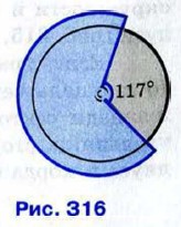 1111. Шлифовальный камень, имеющий форму диска, находится в защитном кожухе (рис. 316). Диаметр камня равен 58 см, дуга незащищённой его части равна 117°. Найдите длину дуги незащищённой части камня.