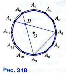 1133. Диагонали A1A6 и А2А9 правильного двенадцатиугольника пересекаются в точке В (рис. 318). Докажите, что: а) треугольники А1А2В и А6А9В равносторонние; б) А1А6 = 2r, где r — радиус вписанной в двенадцатиугольник окружности.