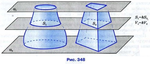 Доказательство теоремы, выражающей принцип Кавальери, основано на понятии определённого интеграла, которое будет введено в 11 классе в курсе алгебры и начал математического анализа. Мы примем эту теорему без доказательства.