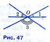67. На рисунке 47 изображены три прямые, пересекающиеся в точке О. Найдите сумму углов: ∠1 + ∠2 + ∠3.