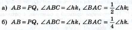 289. Даны два угла hk и h1k1 и отрезок PQ. Постройте треугольник АВС так, чтобы AB = PQ, ∠A = ∠hk,