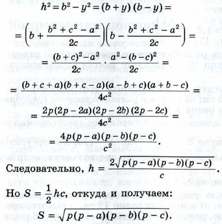 Теорема доказана. Выведенную нами формулу обычно называют формулой Герона, по имени древнегреческого математика Герона Александрийского, жившего предположительно в I в. н. э.