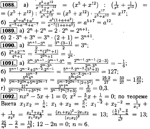 1086. a) x-2 + x-1 + x = x (x-3 + x-2 + 1); б) x-2 + x-1 + x = x-1(x-1 + 1 + x2); в) x-2 + x-1 + x = x-2(1 + x + x3). 1087. a) a-6 + a-4 = a-4(a-2 + 1); 6) a-6 + a-4 = a-6(1 + a2).