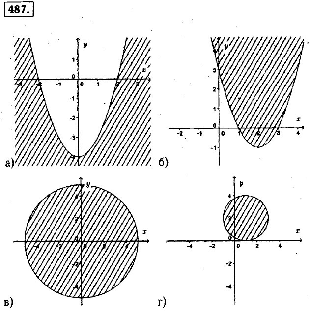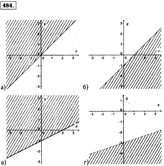 § 8. Неравенства с двумя переменными и их системы Неравенства с двумя переменными482. а) 2 • (-2) - 3 • 3 + 16 = -4 - 9 + 16 = 3 > 0 да; б) (-2)2 + 3 • (-2) • 3 - 32 = 4 - 9 - 18 = -23 < 20 да; в) (-2 + 3)2 + (3 - 4)2 = 2 нет. 483. а) (10; 1); (0; 1); б) (10; 0); (2; -5); в) (1; 0); (10; 1); г) (0; 0); (1; 2).