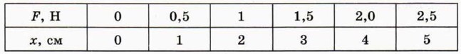 Глава 2. Динамика § 15. Силы упругостиПри решении задач этого параграфа массой пружин можно пренебречь. БАЗОВЫЙ УРОВЕНЬ1. Чему равна сила упругости, действующая со стороны пружины жёсткостью 500 Н/м, если удлинение пружины равно 2 мм? 2. При растяжении пружины на 5 см возникает сила упругости 2 Н. Чему равна жёсткость пружины? 3. Груз массой 100 г равномерно поднимают с помощью пружины жёсткостью 100 Н/м. Насколько при этом растянута пружина? 4. Чтобы растянуть пружину на 2 см, надо приложить силу 30 Н. Какую силу надо приложить, чтобы растянуть ту же пружину на б см? 5. Жёсткость пружины 900 Н/м. Груз какой массы надо подвесить к пружине, чтобы она растянулась на 3 см? 6. В таблице приведены результаты измерений модуля F силы упругости пружины и модуля х её удлинения. Чему равна жёсткость пружины?