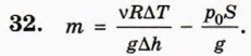 19. Во втором сосуде; в 1,5 раза. Указание. Молекула азота состоит из двух атомов, а молекула углекислого газа — из трёх. 20. 1,5 см. 21. 29,4 с. 22. 4,5 • 1019. 23. 6,5 • 1019. 24. 1026 м-3. 25. 208 кПа. 26. Уменьшилась на 20 %. 27. Уменьшилось на 25 %. Указание. Молекула озона состоит из трёх атомов кислорода. 28. 150 кПа. 29. 0,6. Указание. Процесс происходит при постоянном давлении. 30. На 155 %. 31. Сосуд с влажным воздухом легче. Указание. Во влажном воздухе более лёгкие молекулы воды заменяют такое же количество «молекул воздуха».
