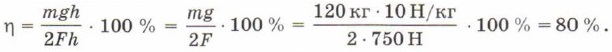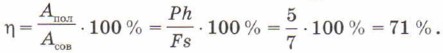 27. Коэффициент полезного действия Ответы, указания, решения к 27. Коэффициент полезного действия27.9. Указание. Использование неподвижного блока не дает ни выигрыша, ни проигрыша в пути. Поэтому совершенная работа будет во столько раз больше полезной, во сколько раз приложенная сила больше веса груза. 27.10. 71 %. Решение. Обозначим модуль приложенной рабочим силы F, путь точки приложения этой силы s, вес груза Р, а пройденный грузом путь h. Совершенная работа Асов = Fs, а полезная работа Апол = Ph. Согласно условию 27.11.75 %. 27.12.62,5 %. 27.13. 80 %. 27.17. 80 %. Решение. Обозначим высоту подъема груза h. Тогда полезная работа Апол = mgh. Совершенная работа Асов = F • 2h, поскольку при использовании подвижного блока проигрывают в расстоянии в 2 раза. КПД блока 27.18. 400 Н. 27.19. 71 %. 27.20. 90 %. Лишней в условии является высота подъема. 27.21. 21 кг. 27.22. 98 %. 27.28. 75 %. 27.29. 80 %; 50 Н. 27.30. 5 м; 10 Н. 27.31. В первом случае 100 %, во втором 80 %. Лишней в условии является масса неподвижного блока. 27.32. 500. 27.33. 6,3 т. 27.34. 35 т. 27.35. 66 %. 27.36. Масса второго груза больше в 2,25 раза.