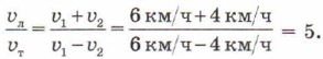 9.58. Через 20 мин и 1 ч 10 мин. Указание. Решить задачу — значит найти все ее решения! 9.61. В 14.00; не менее 60 км. 9.62. Через 20 мин; через 1 ч. 9.63. Решение. Обозначим скорость лодки относительно воды υл, а скорость течения — υт. Тогда по течению лодка движется со скоростью υ1 = υл + υт, а против течения — со скоростью υ2 = υл - υт. Складывая эти уравнения, получаем υ1 + υ2 = 2υл, а вычитая, получаем υ1 - υ2 = 2υт. Разделив первое из полученных уравнений на второе, получим 9.64. 1 мин; 15 с. 9.65. 4 м. 9.66. Через 1 ч и через 3 ч. 9.67. За 12 мин. 9.68. 1 мин 30 с. 9.69. Через 3,75 с, если собаки движутся в одном направлении; через 2,5 с, если они движутся в противоположных направлениях. 9.70. 2 км/ч. Указание. Задачу проще решать, рассматривая движение рыбака относительно шляпы, плывущей по течению. 9.71. 18 км. 9.72. В 2,5 раза; 375 м. 9.73. См. рис. 257.