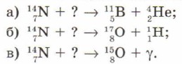 19.27. В результате бомбардировки ядер азота могут возникать ядра атомов других элементов. Определите, бомбардировка какими частицами вызвала следующие ядерные реакции: