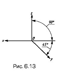 Косоугольная фронтальная диметрическая проекция, известная как кабинетная проекция, широко используется в учебном процессе. Положение аксонометрических осей для нее приведено на рисунке 6.13. Допускается применять фронтальные диметрические проекции с углом наклона оси у 30° и 60°. Коэффициент искажения по оси у равен 0,5, по осям х и z — единице.