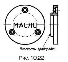 Детали из прозрачных материалов изображают как непрозрачные. Надписи, цифры, знаки, которые у готовой детали видят с лицевой стороны, а наносят с обратной, изображают как видимые и помещают соответствующие указания в технических требованиях (рис. 10.22).