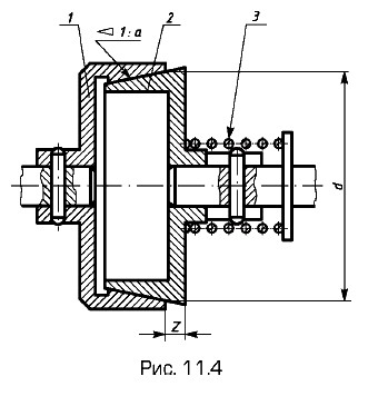 Сопряженные размеры двух конических поверхностей с одинаковой конусностью показаны на примере фрикционной муфты (рис. 11.4). Сопряжение конических поверхностей определяется величиной сопряженных размеров — их конусности