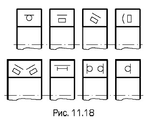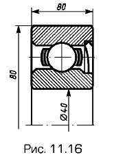 Пятая и шестая цифры определяют конструктивную разновидность подшипника, обозначаемую по ГОСТ 3395—75 от 00 до 99. В данном примере радиальный шариковый подшипник имеет одностороннее уплотнение. Его обозначение — 16, выпускают по ГОСТ 8882—75. Дополняем обозначение 160208 ГОСТ 8882—75. Седьмая цифра определяет серию ширин, в данном примере — 3 (широкая). Вносим ее в обозначение 3160208ГОСТ 8882—75, которое наносят на торцовой (нерабочей) поверхности подшипника. Нулевые обозначения, расположенные левее последней значащей цифры, не указывают. Пусть 0 — обозначение типа подшипника, 00 — конструктивной разновидности, 0 — серии ширин. Тогда условное обозначение будет состоять из трех цифр, например 204 ГОСТ8338-75 (см. рис. 11.15). Класс точности (0 — нормальная, 6, 5, 4, 2 — повышенные в порядке возрастания) указывают через тире перед обозначением, например: 2-3160208ГОСТ8288-75; 6-204ГОСТ8338-75. Шарики и ролики (чаще игольчатые) применяют и в качестве отдельных деталей. Примеры обозначений: Шарик 5,8 — 10ГОСТ3722-81, где 5, 8 — номинальный диаметр в мм; 10 — степень точности. Ролик 2x15,8.3 ГОСТ 6870-81, где 2 — диаметр; 15,8 — длина в мм ролика игольчатого; 3 — степень точности, исполнение А (не указывают). Подшипники качения на сборочных чертежах согласно ГОСТ 2.420—69, как правило, в осевых размерах и сечениях изображают упрощенно, без указания типа и конструктивных особенностей, основными линиями обводят только их контур с проведением тонких диагоналей (рис. 11.17, а). При необходимости в контур подшипника вписывают условное графическое обозначение по ГОСТ 2.770—68, как показано на рис. 11.18 в последовательности, как на рис. 11.14.