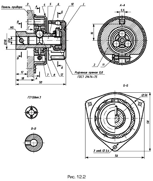 Ознакомление с заданиемДля выполнения чертежа общего вида каждому студенту выдают индивидуальное задание — вариант сборочной единицы с техническим описанием. Руководствуясь техническим описанием, надо уяснить назначение сборочной единицы, принцип работы и взаимодействие основных составных частей. Мысленно наметить последовательность разборки и сборки и выполнить их практически. При этом следует внимательно изучить конструктивные и технические формы составных частей. Выполнение эскизов деталей устройстваИмеет свои особенности, определяемые конструкцией соединений, и рассматривается ниже в § 12.3. Особенности выбора главного изображения и числа изображений — планировки чертежа, а также некоторые правила, относящиеся к оформлению чертежа общего вида, рассмотрены в § 12.4.