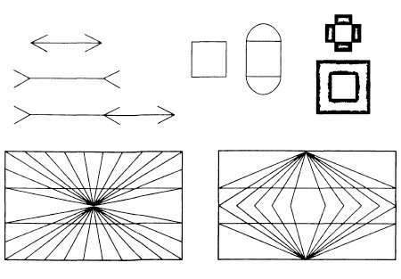 Глава 1. Информация вокруг нас ИнформацияКаждый день вы узнаёте что-то, чего не знали раньше, — получаете новую информацию. Информация — это знания, получаемые вами в школе, это сведения, которые вы черпаете из книг, телепередач, это новости, которые вы слышите по радио или от людей, с которыми общаетесь. В ходе повседневной жизни каждый из нас получает (воспринимает) самую разнообразную информацию. Первичную информацию об окружающем мире — о температуре, цвете, запахе, вкусовых качествах, физических свойствах предметов — люди и другие живые существа получают через органы зрения, слуха, вкуса, осязания, обоняния, через вестибулярный аппарат и нервную систему. Но можем ли мы полностью доверять своим органам чувств? Больше всего информации мы получаем с помощью зрения: глазами мы воспринимаем буквы, цифры, рисунки, различаем цвет, форму, размеры и расположение предметов. Взгляните на рисунки. Что вы можете сказать о размере и форме представленных на них фигур? Скорее всего, вы заметили различия там, где их на самом деле нет. Убедитесь в этом, воспользовавшись линейкой.