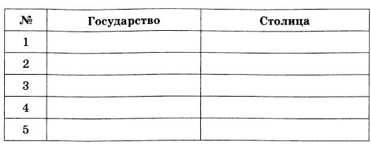 7. Выпишите из географического атласа в тетрадь названия 5 европейских государств в алфавитном порядке. Укажите столицу каждого государства.