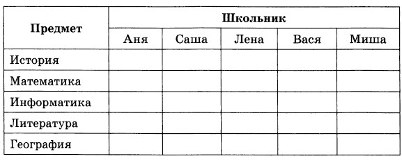 7. Возле школы растут шесть деревьев: сосна , берёза, липа, тополь, ель и клён. Какое из этих деревьев самое высокое и какое самое низкое, если известно, что берёза ниже тополя, липа выше клёна, сосна ниже ели, липа ниже берёзы, сосна выше тополя? 8. Пятеро одноклассников — Аня, Саша, Лена, Вася и Миша — стали победителями школьных олимпиад по истории, математике, информатике, литературе и географии. Известно, что: 1) победитель олимпиады по информатике учит Аню и Сашу работе на компьютере; 2) Лена и Вася тоже заинтересовались информатикой; 3) Саша всегда побаивался истории; 4) Лена, Саша и победитель олимпиады по литературе занимаются плаванием; 5) Саша и Лена поздравили победителя олимпиады по математике; 6) Аня сожалеет о том, что у нее остаётся мало времени на литературу. Победителем какой олимпиады стал каждый из этих ребят?