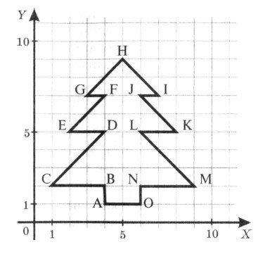 Глава 1. Информация вокруг нас § 1.8. Метод координатПример. Известны координаты пятнадцати точек: А(4, 1), В(4, 2), С(1, 2), D(4, 5), Е(2, 5), F(4, 7), G(3, 7), Н(5, 9), 1(7, 7), J(6, 7), К(8, 5), L(6, 5), М(9, 2), N(6, 2), 0(6, 1). Если отметить эти точки на координатной плоскости, а затем соединить их отрезками в последовательности А — В — С — D — Е — F — G — Н — I — J — К — L — М — N — О — А, то получим следующий рисунок: