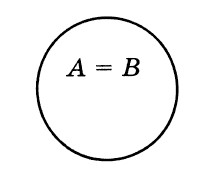 Далекие друг от друга по своему содержанию понятия, не имеющие общих признаков, называются несравнимыми (например, «компьютер» и «молоко», «карандаш» и «ледник»); остальные понятия называются сравнимыми. Рассмотрим некоторые отношения между сравнимыми понятиями. Отношение «тождество»Если объемы понятий совпадают, другими словами, объем одного понятия равен объему другого, то отношение между этими понятиями называют тождеством. Например, понятия «равносторонний прямоугольник» (А) и «квадрат» (В) — тождественные понятия. Графическое представление отношения между ними будет выглядеть так: