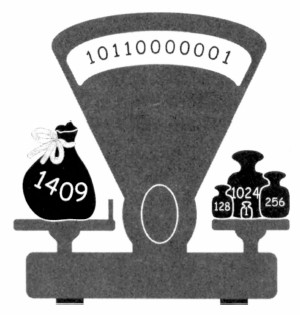 Числа 1 и 0, на которые умножаются члены второго ряда, также составляют исходное число 1409, но в его другой, двоичной записи: 10110000001. Результат записывают так: 140910 = 101100000012. Исходное число мы записали с помощью 0 и 1, другими словами, получили двоичный код этого числа, или представили число в двоичной системе счисления.