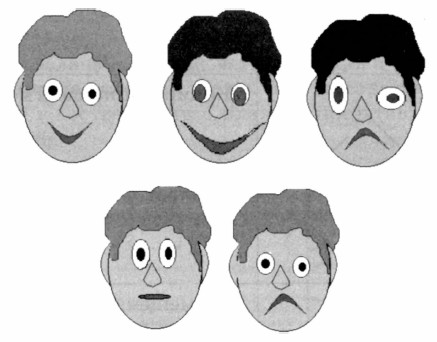 2. Цвет контура четырех центральных лепестков замените на синий. Используйте возможности «цветного ластика». Для этого: 1) с помощью инструмента Выбор цвета сделайте цвет контура основным; 2) сделайте синий цвет фоновым; 3) выберите инструмент Ластик; нажмите правую кнопку мыши и, не отпуская ее, пройдите Ластиком линии рисунка, цвет которых следует заменить. 3. Сделайте цвет контура четырех боковых лепестков зеленым. 4. Сохраните результат работы под тем же именем, но в собственной папке. 5. Завершите работу с графическим редактором. Задание 7 1. Запустите графический редактор. 2. Используя все известные вам инструменты, нарисуйте черным контуром на белом фоне забавную физиономию. 3. Сделайте несколько копий полученного рисунка. 4. Внесите изменения в отдельные детали рисунка, так чтобы каждая физиономия имела свое выражение. Для этого выделяйте нужные фрагменты (инструмент Выделение) и применяйте команды Отразить/повернуть и Растменуть/наклонить меню Рисунок. Мелкие изменения можно вносить, закрашивая отдельные пиксели после увеличения рисунка (инструмент Масштаб).