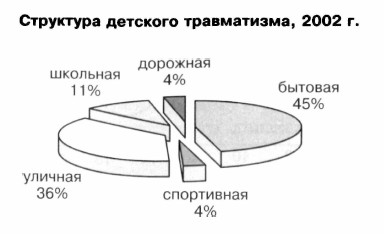 Соответствует ли это расписание состоянию работоспособности школьников? Как его можно улучшить с учетом изменения работоспособности школьников (график из предыдущего задания)? Предложите свой вариант. 5. Результат внезапного воздействия на организм человека какого-либо фактора внешней среды называется травмой. На основании диаграммы, представляющей структуру детского травматизма, составьте соответствующее словесное описание. Подкрепите его примерами из реальной жизни.