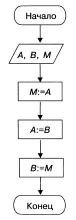 1. Приведите 2-3 примера схем, с которыми вы сталкиваетесь в повседневной жизни. Информационными моделями каких объектов являются эти схемы? 2. На каждом этаже в вашей школе должен быть план эвакуации при пожаре. Найдите и изучите его. Какие объекты представлены на этой схеме? 3. В каких сферах деятельности невозможно обойтись без карт — информационных моделей поверхности Земли? 4. Пусть А — это стакан с чаем, а В — чашка кофе. Необходимо перелить кофе в стакан, а чай — в чашку так, чтобы напитки не смешались. Можно ли рассматривать следующую блок-схему как модель решения поставленной задачи? Какая роль здесь отводится M?