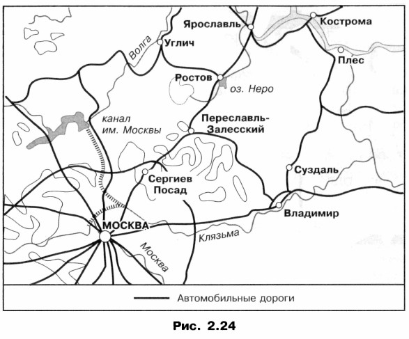 Уменьшенное обобщенное изображение поверхности Земли на плоскости в той или иной системе условных обозначений дает нам географическая карта. На карте (рис. 2.24) изображен внешний вид территории северо-восточной части Центральной России. На ней показаны древние русские города, образующие знаменитое на весь мир Золотое кольцо.