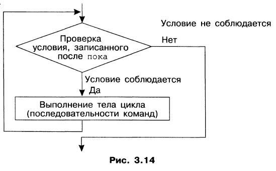 Блок-схема цикла «пока» имеет вид, показанный на рис. 3.14.