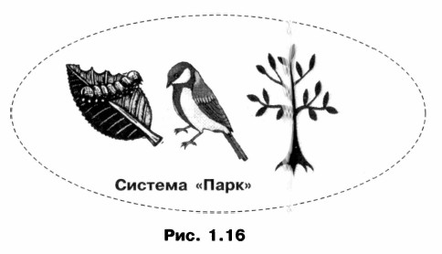 Глава 1. Объекты и системы § 1.6. Системы объектовВо многих случаях связь между объектами очевидна, но не сразу понятно, в составе какой надсистемы их нужно рассматривать. Например, понятно, что дорожное покрытие изнашивается оттого, что по городу ездят автомобили, автобусы, троллейбусы и прочие наземные транспортные средства. Наземные транспортные средства и дороги — составные части транспортной системы города. Дерево может погибнуть от насекомых-вредителей, если уменьшится численность птиц. Насекомые, птицы, деревья — компоненты системы «Парк» или «Лес» (рис. 1.16).