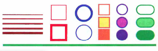 Информатика и ИКТ Задания для практических работЗадание 3.1. Работа с графическими примитивами Внимание! Для рисования графического примитива (прямоугольника, скруглённого прямоугольника, эллипса) нужно щёлкнуть на кнопке с его изображением на панели инструментов, переместить указатель мыши в рабочую область, нажать левую кнопку мыши и, не отпуская её, перемещать указатель мыши по диагонали, следя за изображением на экране. Для изображения квадрата и круга при использовании соответствующих инструментов удерживают нажатой клавишу Shift. Чтобы изменить ширину контура для фигур, получаемых с помощью инструментов Прямоугольник, Эллипс и Скругленный прямоугольник, следует предварительно активизировать инструмент 1. Запустите графический редактор Paint. 2. Командой Рисунок, Атрибуты установите размеры области для рисования: ширина — 1024 точки, высота — 512 точек. 3. Повторите приведённый ниже рисунок, используя инструменты Линия, Прямоугольник, Скругленный прямоугольник и Эллипс.