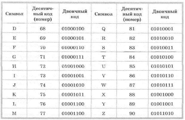 В табл. 4.1 представлен фрагмент кодировки ASCII.