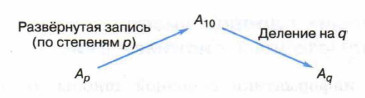Рис. 3.3. Схема перевода целого числа из системы счисления с основанием р в систему счисления с основанием q через десятичную систему счисления.