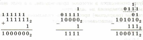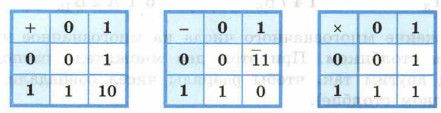 § 12. Арифметические операции в позиционных системах счисления Двоичная арифметикаАрифметика двоичной системы счисления основывается на использовании следующих таблиц сложения, вычитания и умножения: