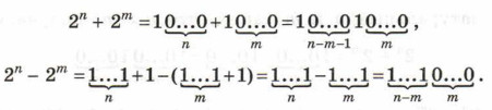 Исходное выражение примет вид: 24000 + 42016 + 22018 - 8600 + 6 = 24000 + 24032 + 22018 - 21800 + 22 + 21. Перепишем выражение в порядке убывания степеней: 24032 + 24000 + 22018 - 21800 + 22 + 21. Для работы с десятичными числами вида 2n полезно иметь в виду следующие закономерности в их двоичной записи: 21 = 10 = 1 + 1;