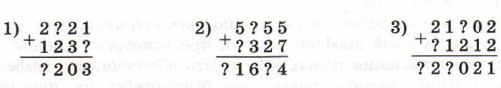 7. В примерах на сложение восстановите неизвестные цифры, обозначенные знаком вопроса, определив вначале, в какой системе счисления эти числа записаны.