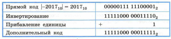 § 13. Представление чисел в компьютере 13.1. Представление целых чиселВ прямом коде числа можно хранить, но выполнение арифметических операций над числами в прямом коде затруднено — оно требует более сложной архитектуры центрального процессора, «умеющего» выполнять не только сложение, но и вычитание, а также «знающего» особый алгоритм обработки не имеющего «веса» знакового разряда. Этих трудностей позволяет избежать использование дополнительного кода.