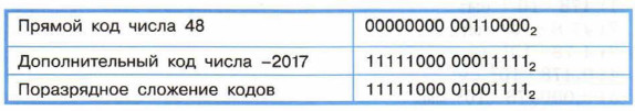 Выполним эту операцию в 16-разрядных машинных кодах. Нам потребуются прямой код числа 48 и дополнительный код числа -2017.
