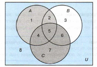 С помощью операций объединения, пересечения и дополнения до универсального множества выразите через А, В и С следующие множества: 1) 1 ∪ 2 ∪ 3 ∪ 4 ∪ 5 ∪ 6;