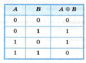 Строгая дизъюнкция обозначается символом ⊕ и задаётся следующей таблицей истинности: