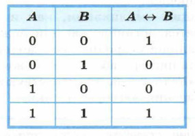 В логике эквиваленция обозначается символом ↔ и задаётся следующей таблицей истинности: