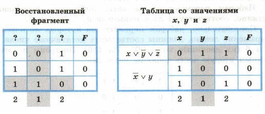 Сравним эту таблицу с восстановленным нами фрагментом исходной таблицы истинности, предварительно подсчитав, сколько раз каждая переменная принимает единичное значение.