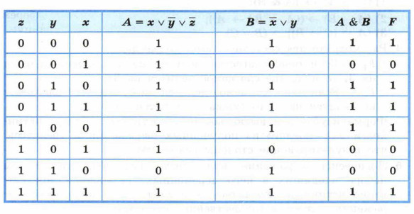 Теперь выясним, при каких значениях х, у, z логическое выражение ложно: