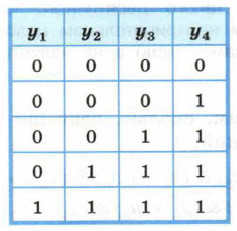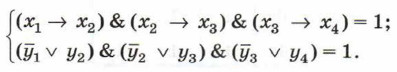 можно преобразовать к виду: (y1 → y2) & (y2 → y3) & (y3 → y4) = 1. Следовательно, как и первое уравнение, это уравнение имеет 5 решений. Представим их в табличной форме: