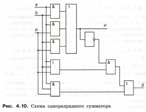 Полученные выражения позволяют реализовать одноразрядный двоичный сумматор схемой, представленной на рисунке 4.10.