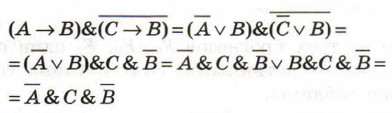 Получившееся высказывание будет истинным только в случае, если С — истина, а А и В — ложь. А это значит, что логику изучал только третий ученик, а первый и второй не изучали.