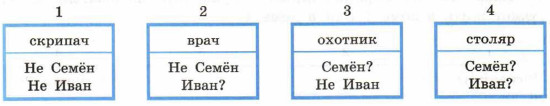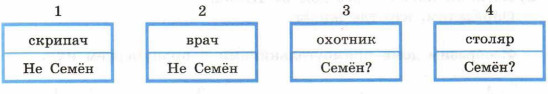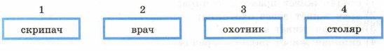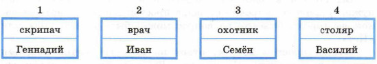 Но врач живёт левее охотника (2), следовательно, скрипач не может жить в доме 4, т. к. в противном случае получится, что врач, живущий с ним рядом, живёт правее охотника, а это противоречит условию (2). Таким образом, скрипач живёт в доме 1, а врач — рядом с ним, в доме 2.