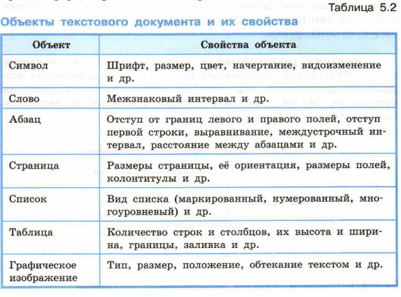 Операции форматирования позволяют точно определить, как будет выглядеть текст на экране монитора или на бумаге после печати на принтере. Операции форматирования могут применяться как к отдельным объектам текстового документа (табл. 5.2), так и ко всему документу в целом. В первом случае говорят о прямом форматировании, во втором — о стилевом.