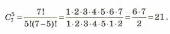 § 4. Обработка информации 4.2. Кодирование информацииДействительно, множество, с которым мы имеем дело, состоит из мест для записи символов в последовательности. Его элементы можно обозначить 1, 2, 3, 4, 5, 6 и 7. Требуется выбрать из этого множества пять мест для размещения буквы А. Число возможных вариантов можно вычислить как число сочетаний из 7 по 5: