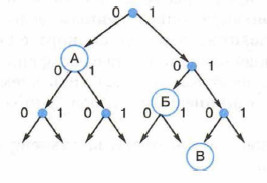 Отметим вершины, соответствующие используемым кодовым словам: А - 0, Б - 10, В - 110: